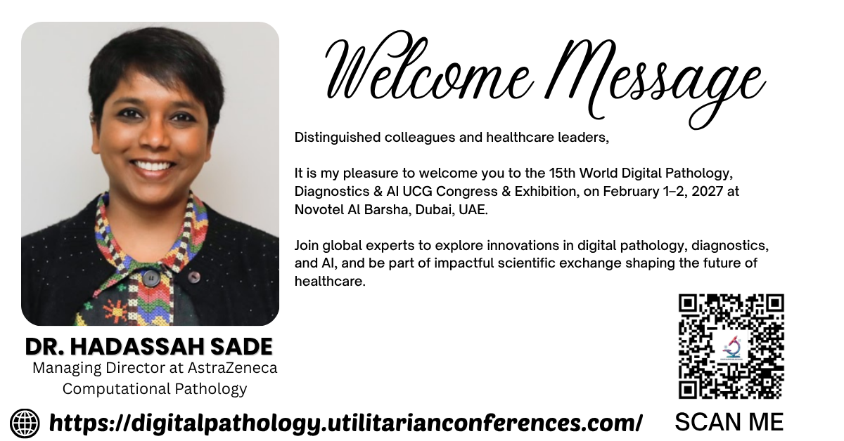 Biography: Dr. Hadassah Sade leads AstraZeneca's Computational Pathology division, an innovative team utilizing artificial intelligence, digital pathology, and translational data science to accelerate medicine development and delivery. Her division focuses on leveraging AI-based computational pathology solutions to enhance patient selection for clinical trials and treatment regimens. Under Dr. Sade's leadership, the team transforms drug development landscapes, advancing life-changing therapies for patients in need. Her vision and expertise position AstraZeneca as a leader in integrating technology and science in healthcare, ultimately benefiting patients and the broader medical community through timely, effective treatments.